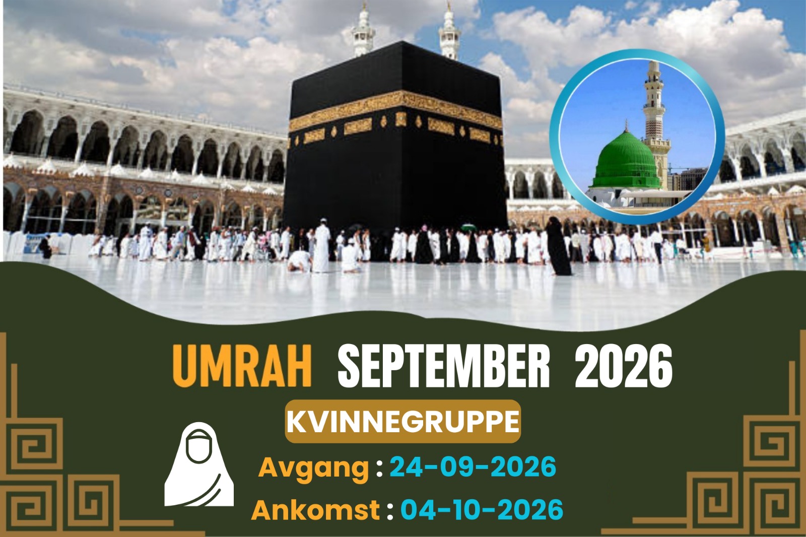 Umrah September – October Women Group 2026 Price Starts From 21,490 NOK Travel Dates For Umrah Departure 24-09-2026 Arrival 04-10-2026 Prices For Adults Over 12 Years: 4 People share a room 21,490 NOK 3 People share a room 22,990 NOK 2 People share a room 24,990 NOK Prices For Children Between 2-11 Years: […]